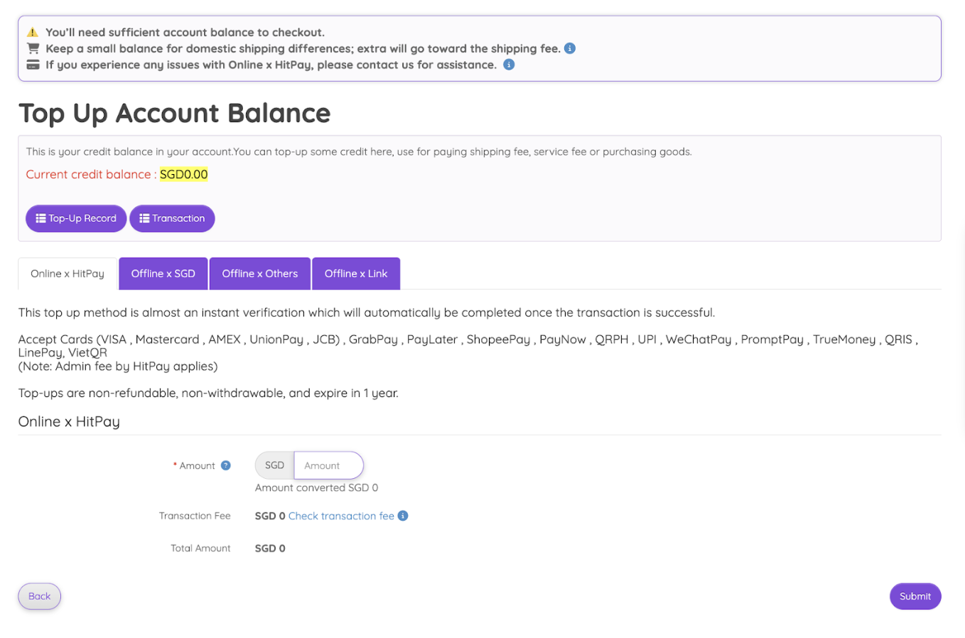 | Total Shipping Fee | SGD66.00 | SGD38.00 |